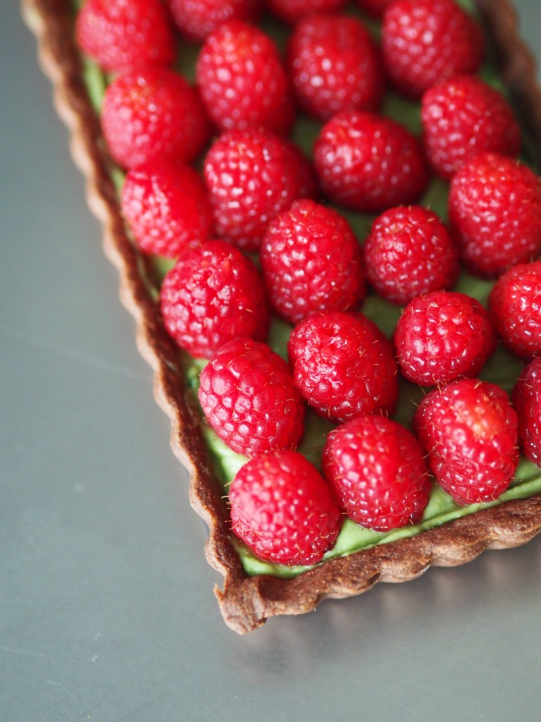 This one is really for me. I wanted to make something pretty, I needed to use up our matcha powder from our trip to Taiwan, and I had been eyeing those cartons of raspberries at Costco for a long time. Plus, I bought this tart pan months ago with the intention of making this very tart. (Ahh, now you know why I dropped that tart pan into our shopping basket. Thanks for not stopping me.)