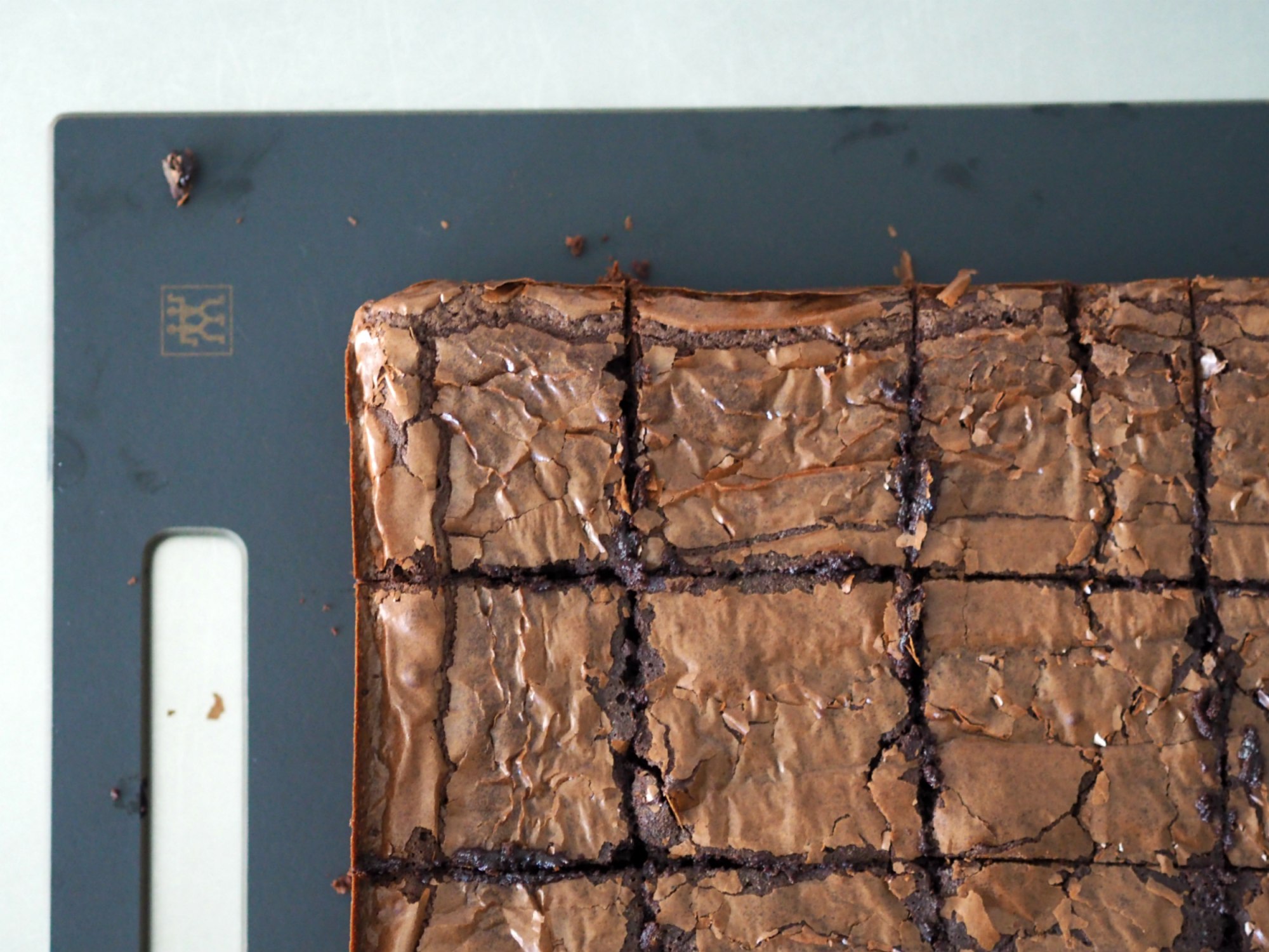 - Gently tug and lift the foil out of the pan. Cut the brownie into squares (or triangles). Store in an airtight container with wax paper between each layer. It’ll last for a week in room temperature. I also froze some to be mixed in with ice cream sundaes in the future.