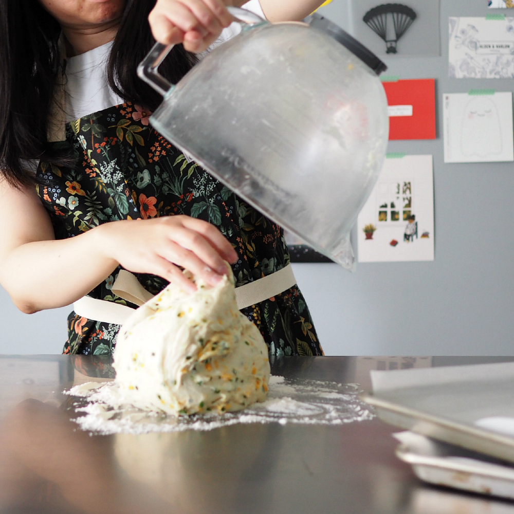 One of my favourite tools to use when working with dough is a bench scraper. It helps you cut, shape, and move the dough from surface to surface easily.