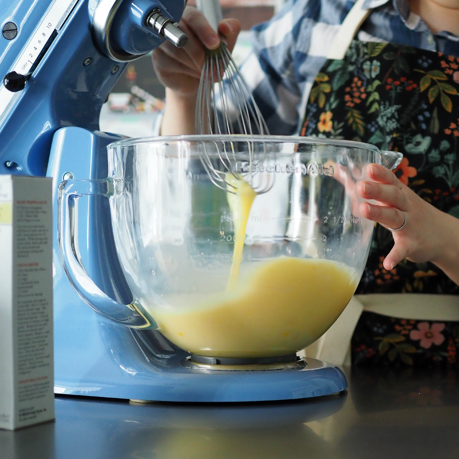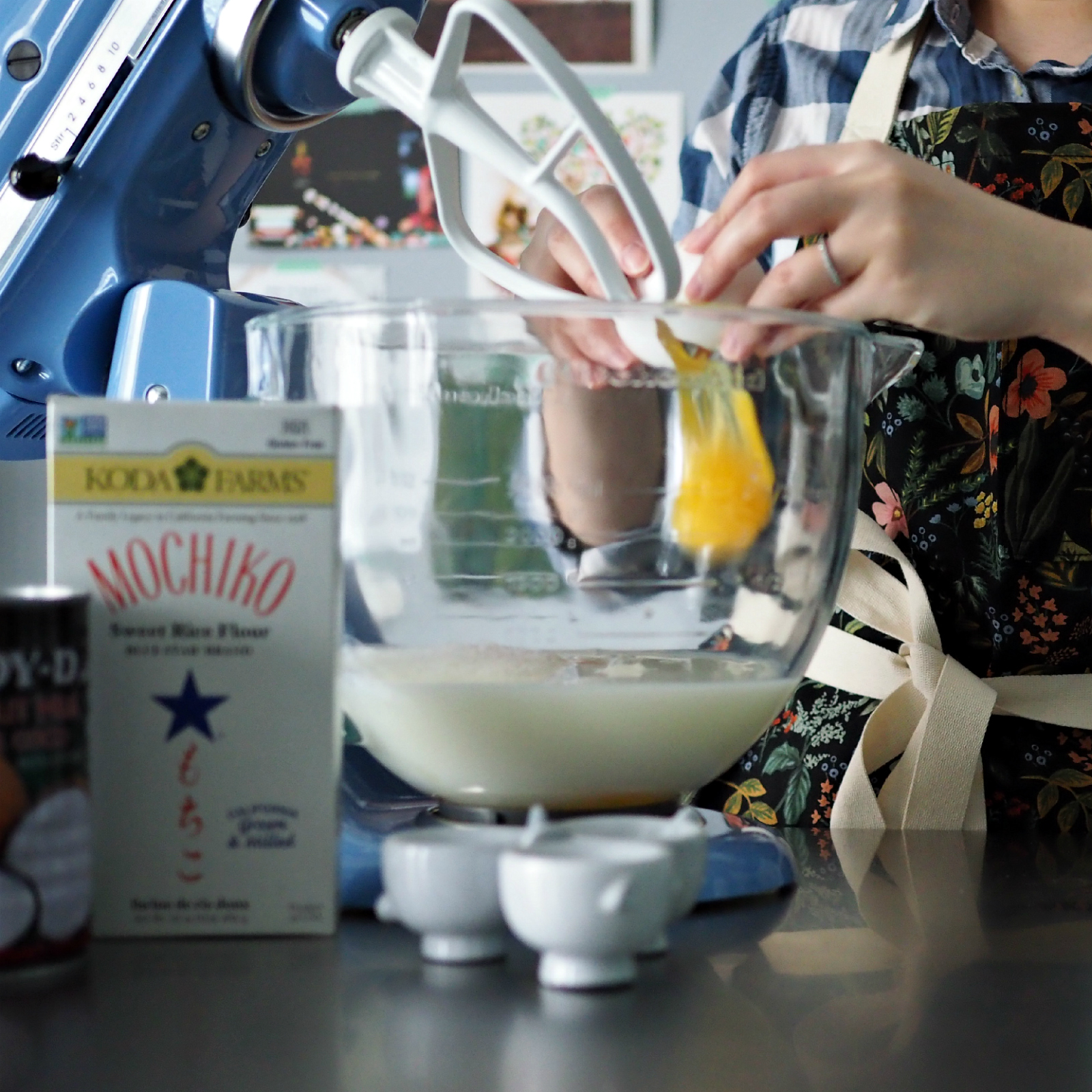 - Add the box of sweet rice flour, sugar, baking powder, and salt. Here, I did use the stand mixer to get it all nicely combined.