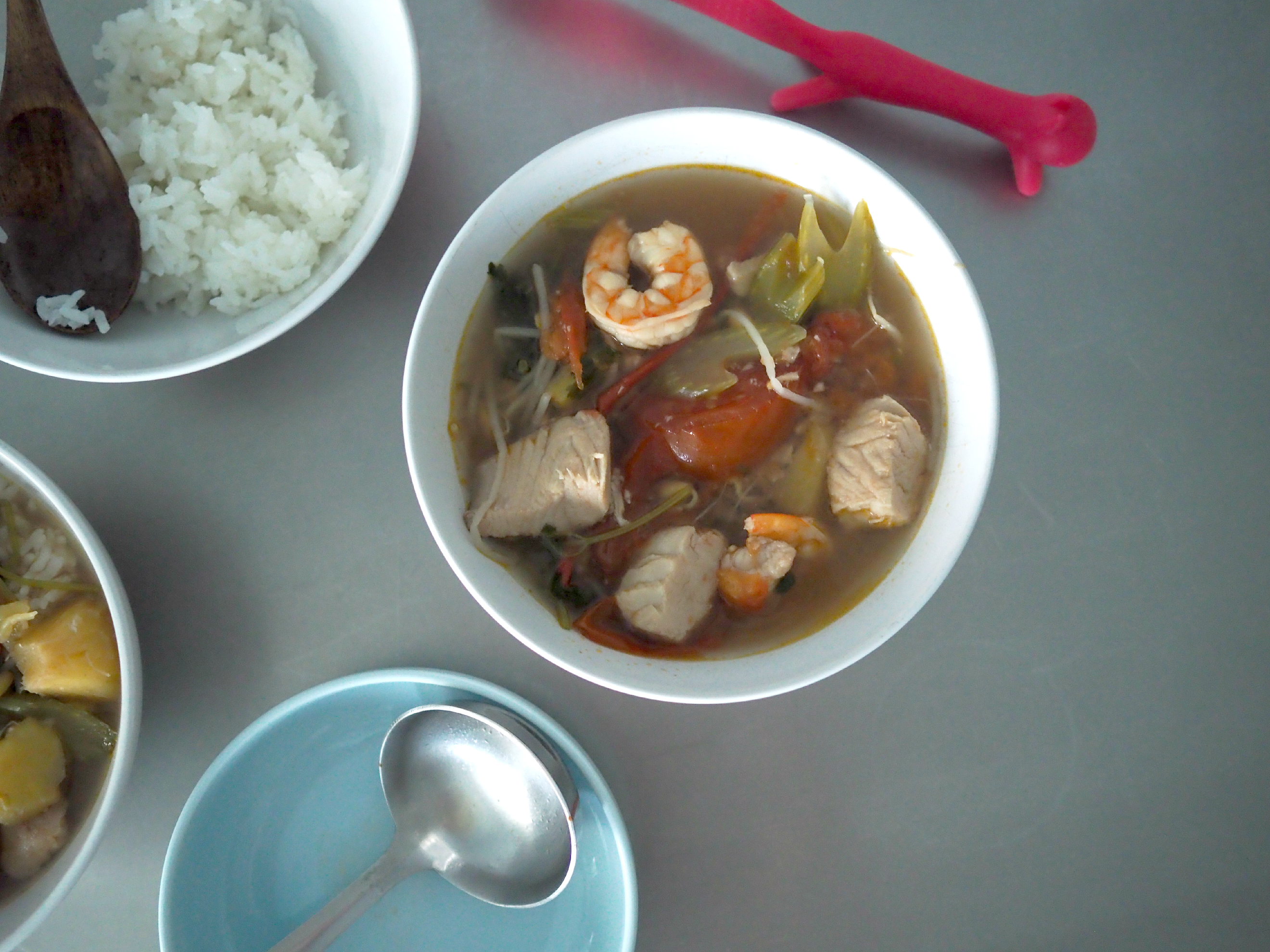 - Serve with rice or rice vermicelli. Try to eat the shrimp and fish on the first day if you plan on having leftovers.