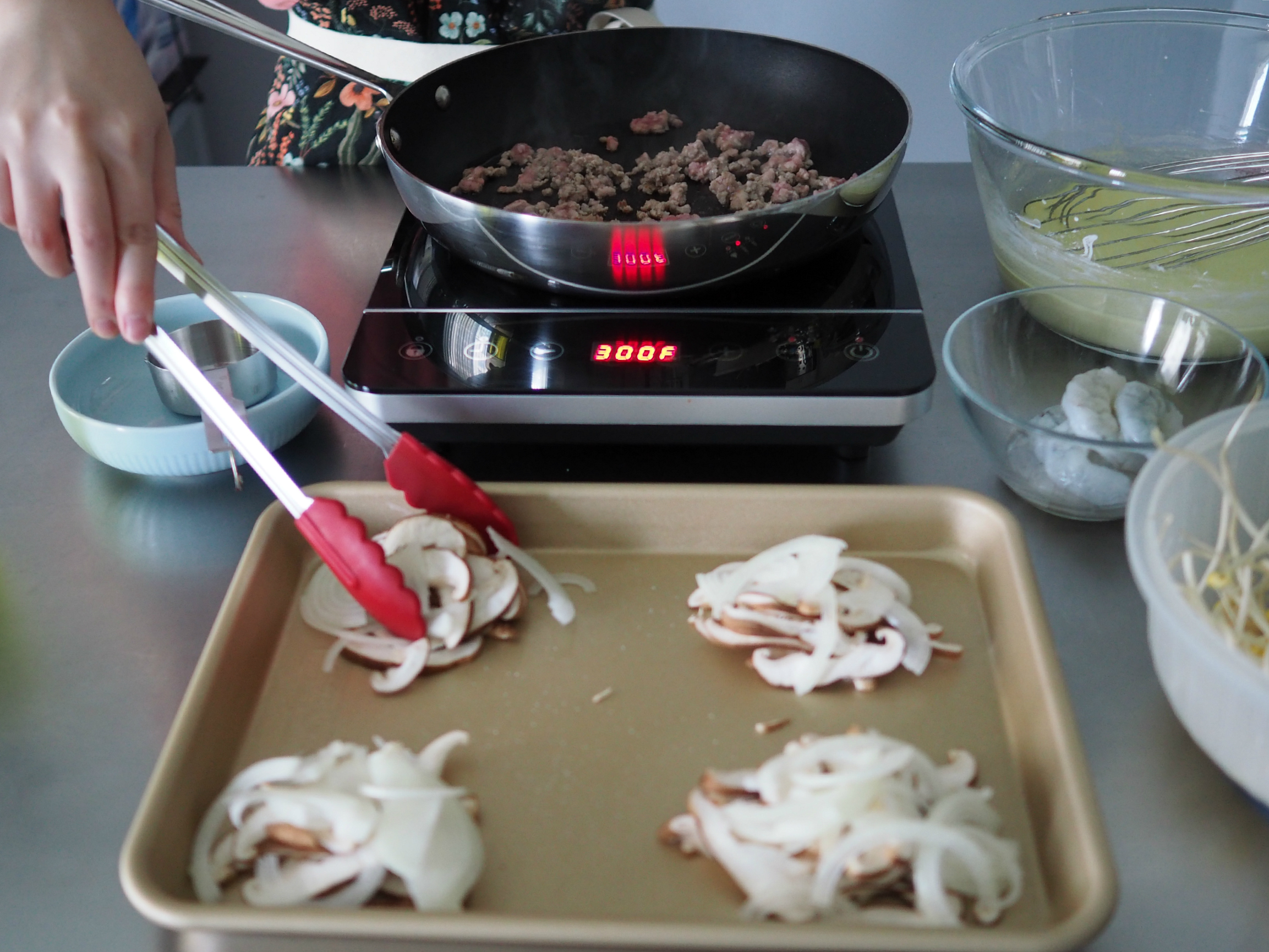 - It’s a good idea to portion them out. For instance, if you’re making 4, have the piles ready to go as things can move quickly as you cook.