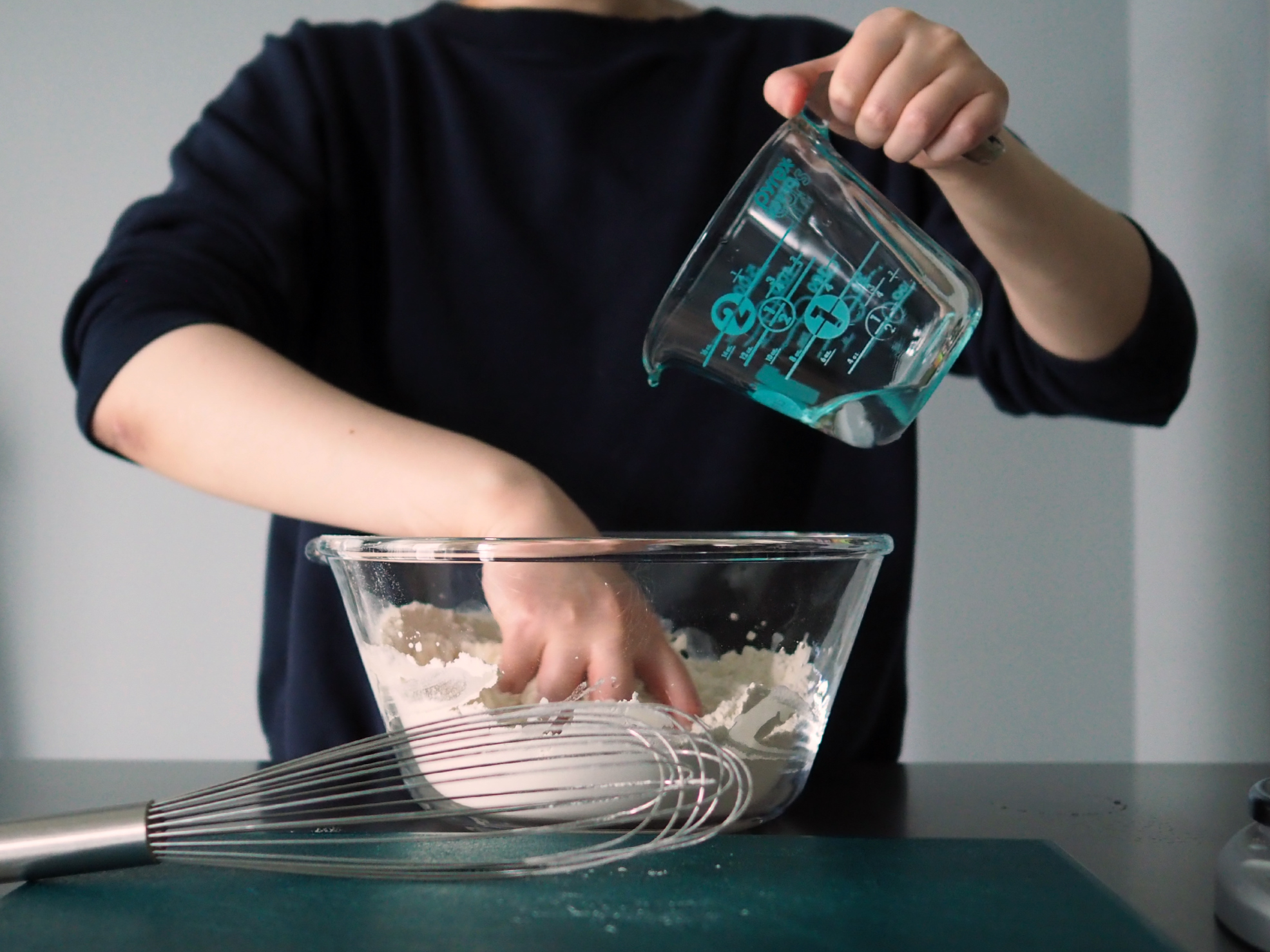 - Mix the flour and salt together. Then pour in the water and combine into a rough dough.