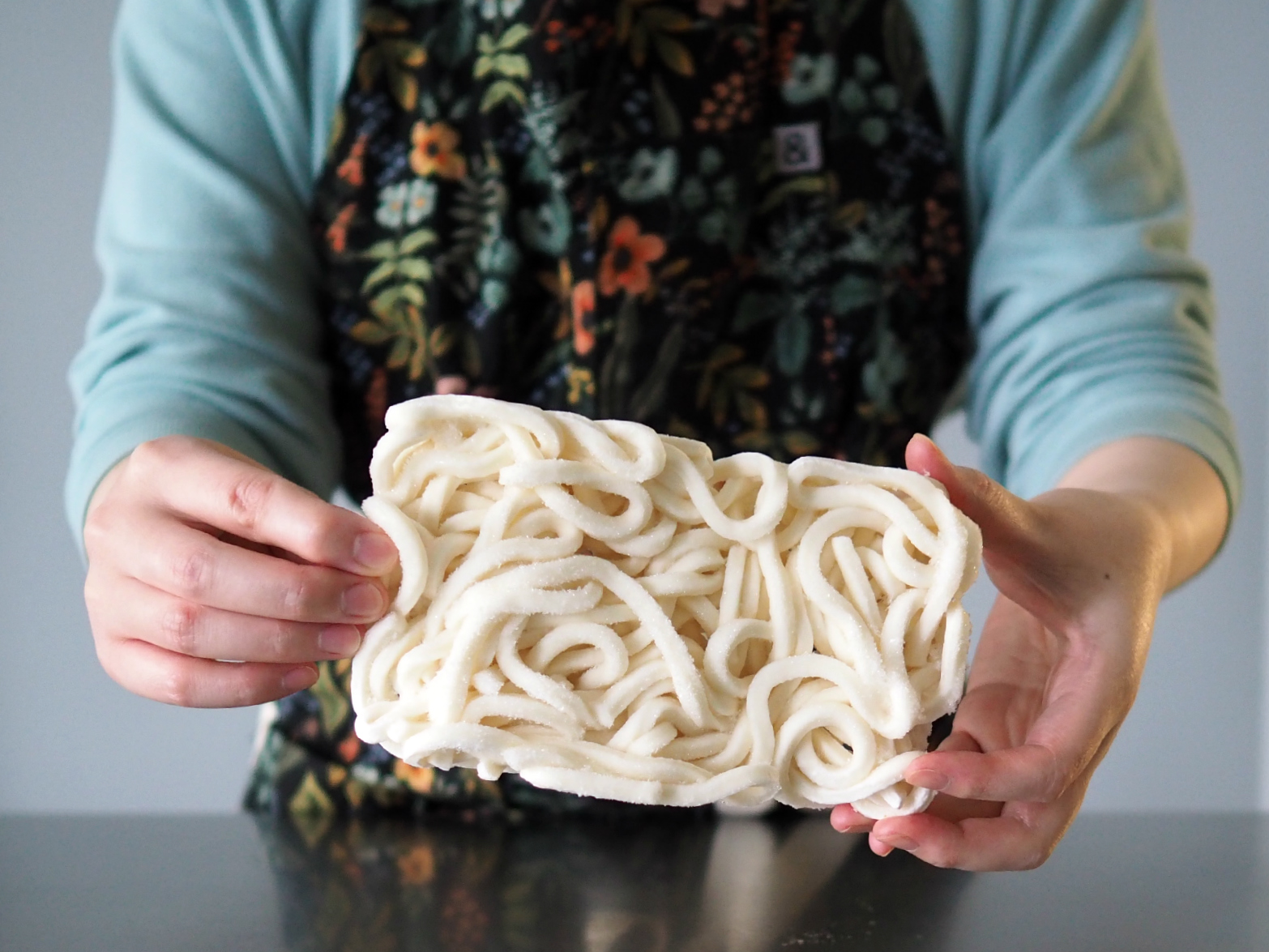 - By now, your pot of water should be at a rolling boil, add the frozen udon in it to cook.